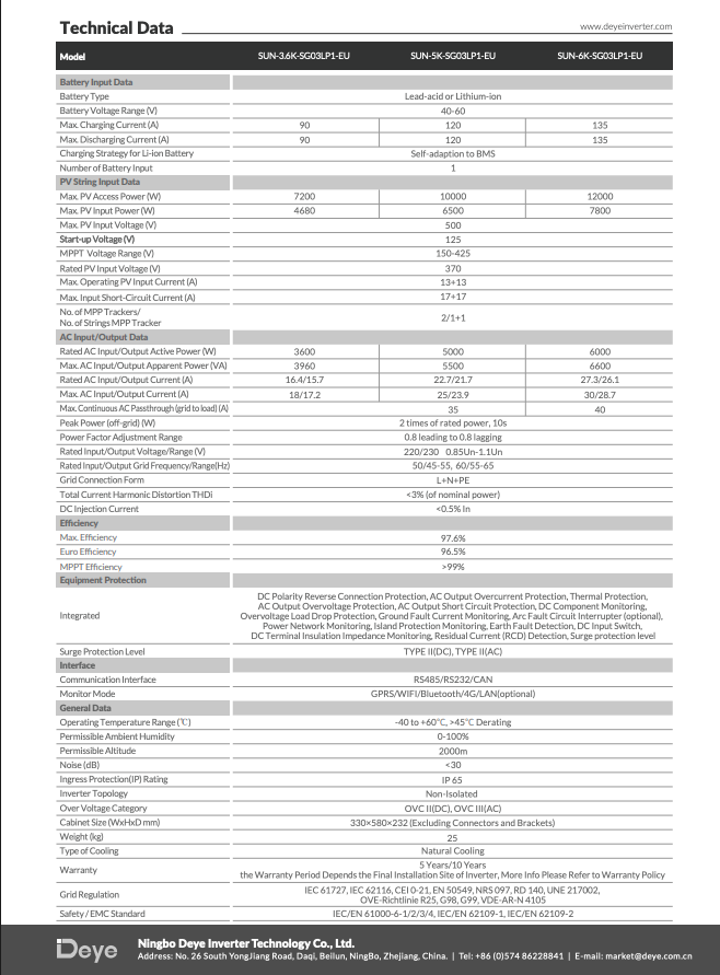 1 × Deye SUN-6K-SG03LP1-EU