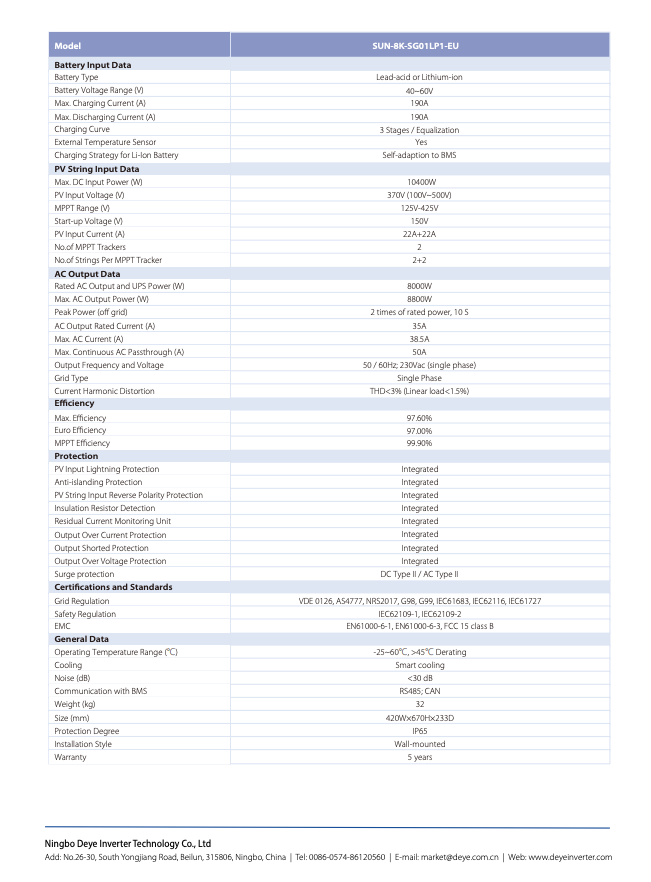 1 × Deye SUN-7.6K/8K-SG01LP1-EU