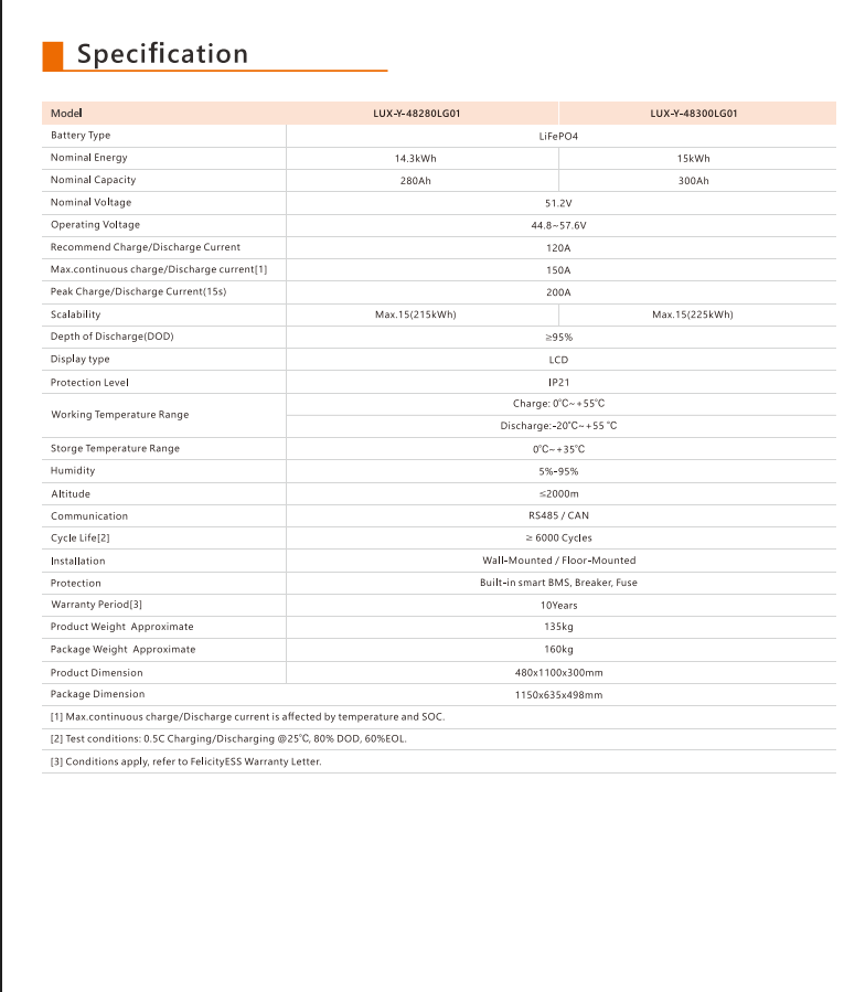 Felicity 15 kWh | FLA48300 (LUX-Y-48300LG01) | Bateria solar de lítio LiFePO4 51.2 V 300 Ah |