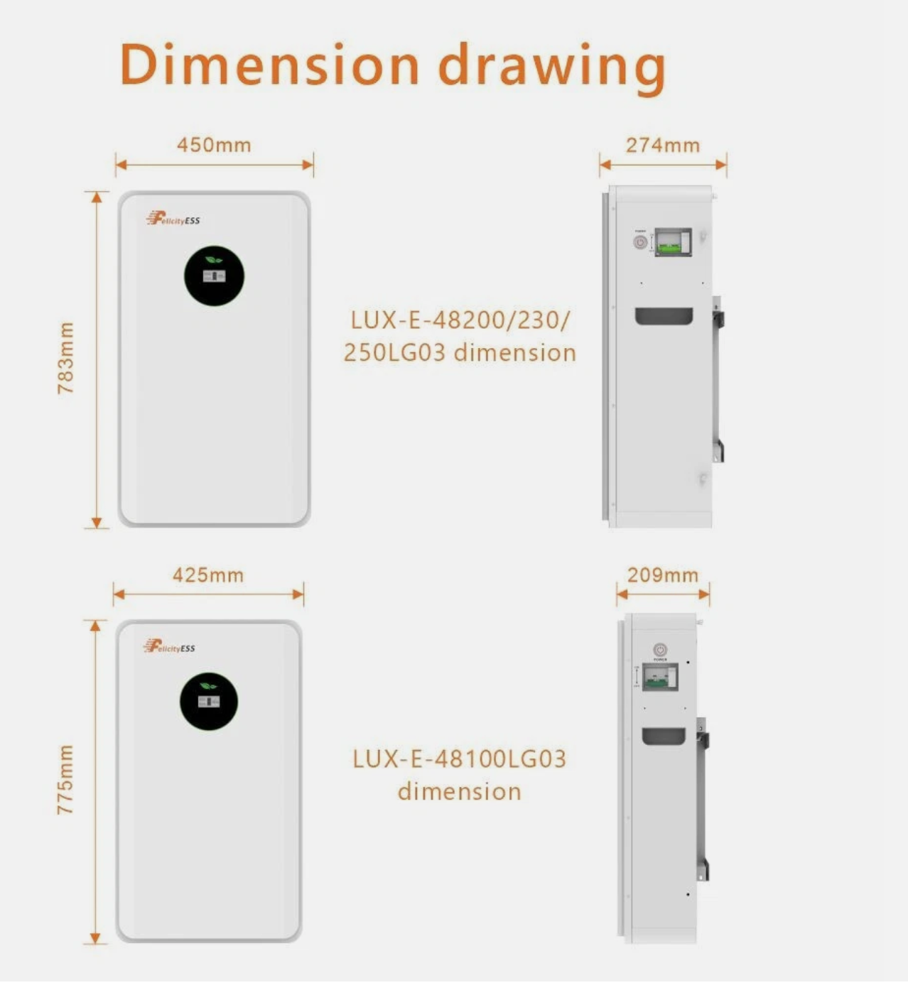 Felicity LUX-E-48200LG03 Bateria de Parede LiFePO4 de 10,5 kWh