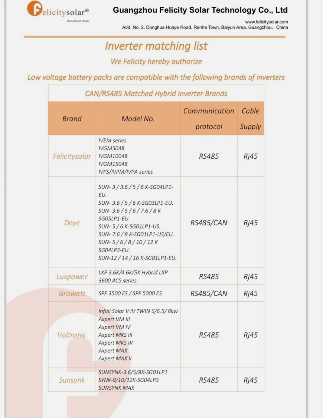 1× Bateria Felicity LUX-E-48200LG03